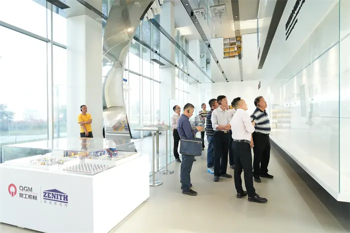 ประธาน Lin Boqian และคณะได้เยี่ยมชมห้องนิทรรศการประวัติการพัฒนาของบริษัท Quangong Co., Ltd. เป็นครั้งแรก และพวกเขาก็เข้าใจถึงการต่อสู้ของบริษัทตั้งแต่เริ่มก่อตั้งจนถึงการเป็นผู้นำในอุตสาหกรรมผ่านทางบอร์ดแสดงผลกราฟิก วัสดุวิดีโอ และการจัดแสดงทางกายภาพ บุคคลที่รับผิดชอบ Quangong ได้แนะนำรายละเอียดเกี่ยวกับความก้าวหน้าทางนวัตกรรมที่ Quangong Co., Ltd. สร้างขึ้นในด้านอุปกรณ์เครื่องจักรอิฐมานานกว่า 40 ปี รวมถึงปรัชญาองค์กรที่ว่า "งานฝีมือสร้างคุณภาพ และเทคโนโลยีนำไปสู่อนาคต" ประธาน Lin Boqian ชื่นชมความสำเร็จของ Quangong Co., Ltd. ในการยืนหยัดในการวิจัยและพัฒนาเทคโนโลยี และส่งเสริมการยกระดับอุตสาหกรรม