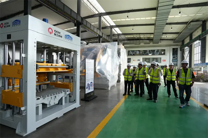 หลังจากนั้น แขกผู้มาเยือนได้ย้ายไปที่พื้นที่จัดแสดงตัวอย่างอิฐ และชมอิฐซึมผ่านได้ อิฐทางเท้า บล็อก และผลิตภัณฑ์อื่น ๆ คุณภาพสูงที่ผลิตโดยอุปกรณ์ของ QGM และแสดงความสนใจอย่างมากต่อความสำเร็จทางเทคโนโลยี "การรีไซเคิลขยะมูลฝอย" ของบริษัท ในพื้นที่จัดแสดงอุปกรณ์ทำอิฐ ประธาน Lin Boqian และทีมงานของเขาได้ตรวจสอบอุปกรณ์หลักอย่างใกล้ชิด เช่น เครื่องขึ้นรูปบล็อกอัตโนมัติและสายการผลิตอัจฉริยะที่พัฒนาโดย QGM อย่างเป็นอิสระ และแลกเปลี่ยนข้อได้เปรียบทางเทคนิคและโอกาสในการประยุกต์ตลาด ณ จุดนั้น ประธาน Lin Bo ยืนยันอย่างเต็มที่ถึงการมีส่วนร่วมที่โดดเด่นของ QGM ในด้านการผลิตอุปกรณ์ระดับไฮเอนด์และวัสดุก่อสร้างที่เป็นมิตรต่อสิ่งแวดล้อม โดยเน้นย้ำว่า "QGM เป็นรูปแบบเชิงนวัตกรรมขององค์กรเอกชนในเฉวียนโจว เราหวังว่าจะได้เล่นบทบาทของสหพันธ์ในฐานะสะพานต่อไปในอนาคต ส่งเสริมการพัฒนาที่มีการประสานงานกันของห่วงโซ่อุตสาหกรรม และช่วยให้ "Quanzhou Smart Manufacturing" ก้าวไปสู่ระดับโลก" รองผู้จัดการทั่วไป Fu Huabin ตอบว่าบริษัทจะยังคงเพิ่มการลงทุนด้านการวิจัยและพัฒนาต่อไป และทำงานร่วมกับพันธมิตรจากทุกสาขาอาชีพเพื่อสำรวจโอกาสใหม่ ๆ ในการพัฒนาอุปกรณ์อัจฉริยะและการผลิตที่เป็นมิตรต่อสิ่งแวดล้อมแบบบูรณาการ