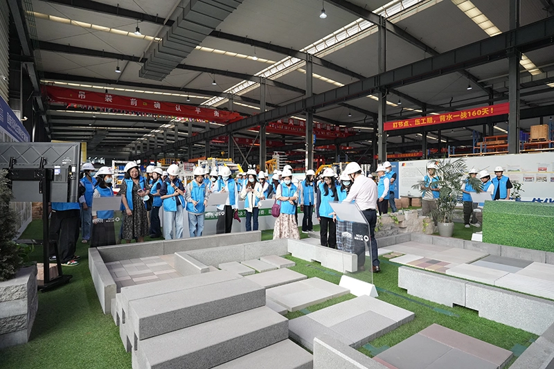 ในเวิร์กช็อปการผลิตอุปกรณ์ ผู้เยี่ยมชมได้เยี่ยมชมข้อกำหนดและการใช้งานต่างๆ ของผลิตภัณฑ์ที่ผลิตโดยใช้เครื่องจักรผลิตอิฐของ Quangong Machinery ซึ่งรวมถึงบล็อกผนัง หินสำหรับปู วัสดุควบคุมน้ำท่วม การป้องกันความลาดชันของระบบนิเวศ และกำแพงกันแรงโน้มถ่วง ในพื้นที่จัดแสดงนิทรรศการ ห้องปฏิบัติการ เวิร์กช็อปการประกอบ และเวิร์กช็อปการแก้ไขจุดบกพร่อง ผู้เยี่ยมชมได้เรียนรู้เกี่ยวกับกระบวนการผลิตผลิตภัณฑ์ของบริษัท