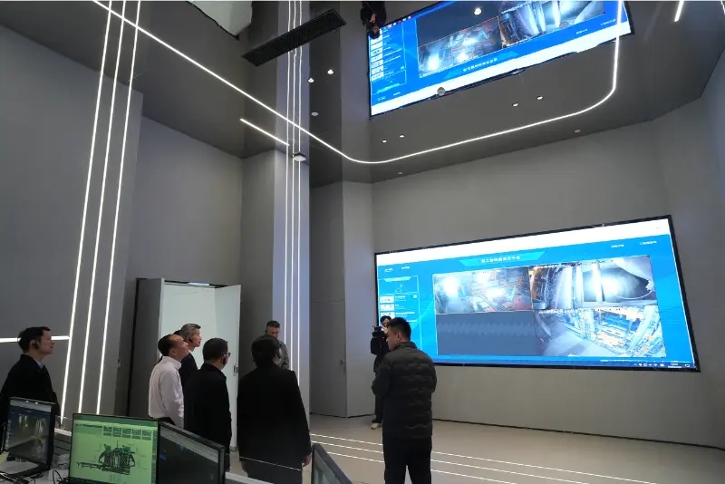จากนั้น ทีมตรวจสอบได้เยี่ยมชมศูนย์ควบคุมของ "แพลตฟอร์มบริการคลาวด์อุปกรณ์อัจฉริยะ Quangong" เพื่อทำความเข้าใจโดยละเอียดเกี่ยวกับฟังก์ชันการทำงานและประสิทธิภาพการดำเนินงานของแพลตฟอร์ม แพลตฟอร์มนี้ใช้ประโยชน์จากเทคโนโลยีล้ำสมัย โดยให้บริการแบบ end-to-end รวมถึงการตรวจสอบอุปกรณ์ออนไลน์ การดำเนินงานและการบำรุงรักษาระยะไกล สำหรับลูกค้าทั่วโลก จึงช่วยเพิ่มประสิทธิภาพการบริการหลังการขายได้อย่างมาก แพลตฟอร์มดังกล่าวได้รับการยอมรับว่าเป็นโครงการสาธิตระดับชาติสำหรับการผลิตที่มุ่งเน้นการบริการ คุณหลิว มินแสดงความเห็นชอบโครงการริเริ่มด้านการเปลี่ยนแปลงทางดิจิทัลของบริษัท และสนับสนุนบริษัทให้เพิ่มการลงทุนในด้านนวัตกรรมทางเทคโนโลยีต่อไป