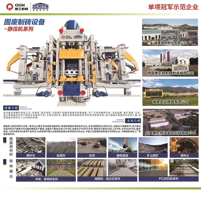 อุปกรณ์นี้สามารถใช้กันอย่างแพร่หลายขยะมูลฝอยในการก่อสร้าง, ขยะมูลฝอยโลหะ, ขยะมูลฝอย, ผงหิน, กากตะกอน, และโคลนล้างทรายที่เกี่ยวข้องกับขยะมูลฝอยเพื่อผลิตอิฐเลียนแบบ PC หิน, อิฐภูมิทัศน์สวน, อิฐป้องกันลาดอนุรักษ์น้ำ, อิฐผิวถนน, หินริมถนน, วัสดุก่อสร้างตกแต่งผนัง ฯลฯ มีข้อได้เปรียบที่ไม่เหมือนใครในการใช้วัสดุที่เป็นผงเช่นกากของเสียและกากแร่ซึ่งสามารถเพิ่มปริมาณของวัสดุผงที่เพิ่มเข้ามาได้อย่างมีนัยสำคัญบรรลุผลขนาดใหญ่อย่างแท้จริง การบริโภคขยะมูลฝอยจำนวนมากและการบรรลุผลของการใช้ประโยชน์ทุติยภูมิอย่างครอบคลุมของทรัพยากรขยะมูลฝอย