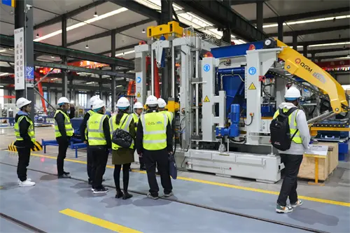 การเข้าสู่เวิร์กช็อปการผลิตอัจฉริยะของ QMG ผู้เข้าชมสังเกตเห็นเครื่องขึ้นรูปบล็อกอัตโนมัติอย่างใกล้ชิด ตัวเครื่องชั่งน้ำหนักหลายร้อยตันระบบไฮดรอลิกที่มีการส่งผ่านความแม่นยำหน่วยแม่พิมพ์ที่มีการสลับแบบปรับแต่งได้ ... "อุปกรณ์นี้ปรับให้เข้ากับความต้องการของลูกค้าได้อย่างรวดเร็วผ่านการออกแบบแบบแยกส่วนรองประธานและพรรคของเขาได้รับการยอมรับอย่างสูง -