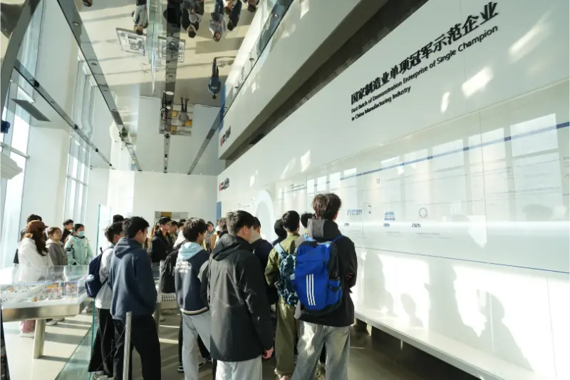เข้าสู่บริษัท Quangong Machinery Co., Ltd.ห้องนิทรรศการประวัติศาสตร์การพัฒนา ชุดภาพถ่ายเก่าอันล้ำค่า และแบบจำลองอุปกรณ์ทางประวัติศาสตร์บันทึกการเดินทางของบริษัทนับตั้งแต่ก่อตั้งในปี 1979 จนถึงปัจจุบัน จากจุดเริ่มต้นในฐานะโรงงานเครื่องจักรวิศวกรรมขนาดเล็กในเขตเทศบาลเมือง สู่สถานะปัจจุบันในฐานะมาตรฐานอุตสาหกรรมโดยมีบริษัทสาขาในต่างประเทศ เช่น Zenith ในเยอรมนี และรางวัลมากมาย รวมถึงการเป็นหนึ่งใน "China Manufacturing Single Champion Demonstration Enterprises" ชุดแรกซึ่งได้รับการยอมรับจากกระทรวงอุตสาหกรรมและเทคโนโลยีสารสนเทศ เส้นทางการเติบโตของ Quangong Machinery Co., Ltd. ช่วยให้คณาจารย์และนักศึกษาซาบซึ้งในความทุ่มเทและนวัตกรรมที่อยู่เบื้องหลังปรัชญาการดำเนินธุรกิจ "คุณภาพกำหนดมูลค่า และความเป็นมืออาชีพสร้างความสำเร็จ" คู่มือของบริษัทให้คำอธิบายโดยละเอียดเกี่ยวกับความก้าวหน้าทางเทคโนโลยีและการทำซ้ำผลิตภัณฑ์ในแต่ละขั้นตอนของการพัฒนา เมื่อกล่าวถึงเหตุการณ์สำคัญ เช่น การพัฒนา "เครื่องทำอิฐหลายชิ้นอัตโนมัติเต็มรูปแบบ" เครื่องแรกในประเทศจีนในปี 2543 และเครื่องจักรปูนแห้งที่ผลิตในประเทศเครื่องแรกในปี 2547 ผู้ชมมักแสดงความชื่นชม ทำให้นักเรียนมีความเข้าใจที่ชัดเจนยิ่งขึ้นเกี่ยวกับวิถีการพัฒนาของอุตสาหกรรมการผลิตอัจฉริยะ